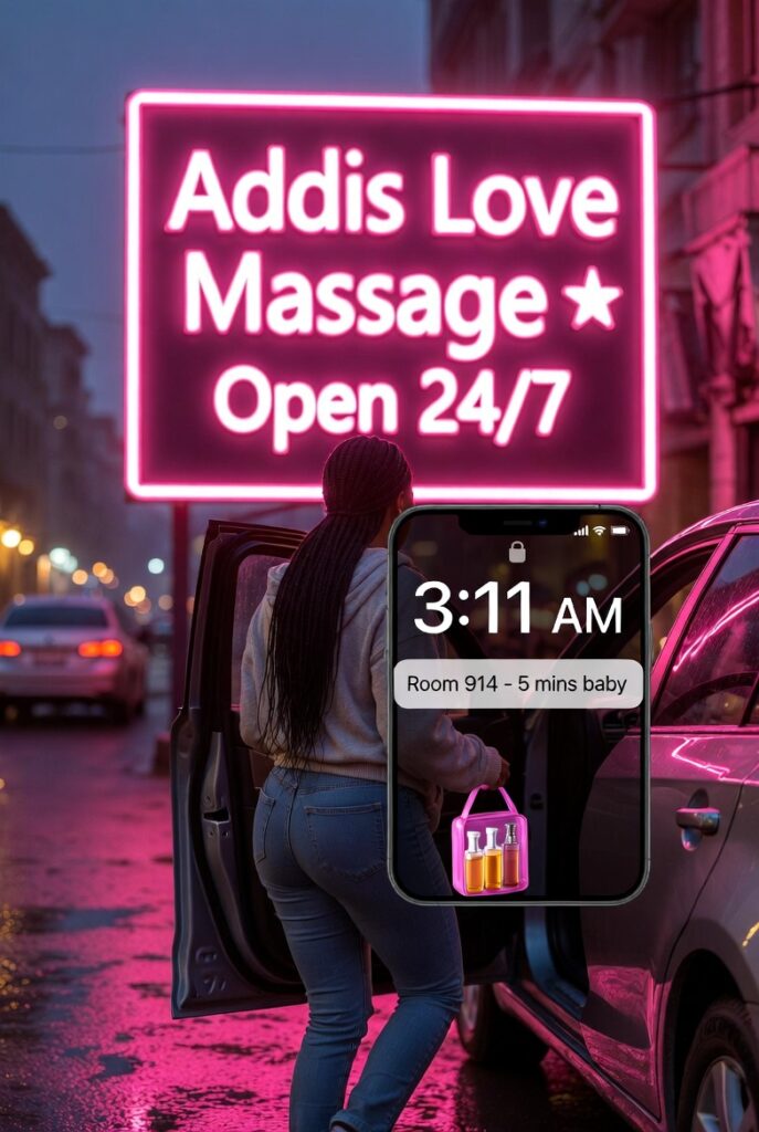 Addis Love Massage – open 24/7, never closed! Morning, noon, midnight, or 4 AM – our sweet girls are always ready to bring soft, loving massages to your hotel or our cozy room. Any hour you feel lonely or need that special touch, just one message and your happiest moment starts right away ♡ Addis Ababa’s sweetest love, whenever you want it.
